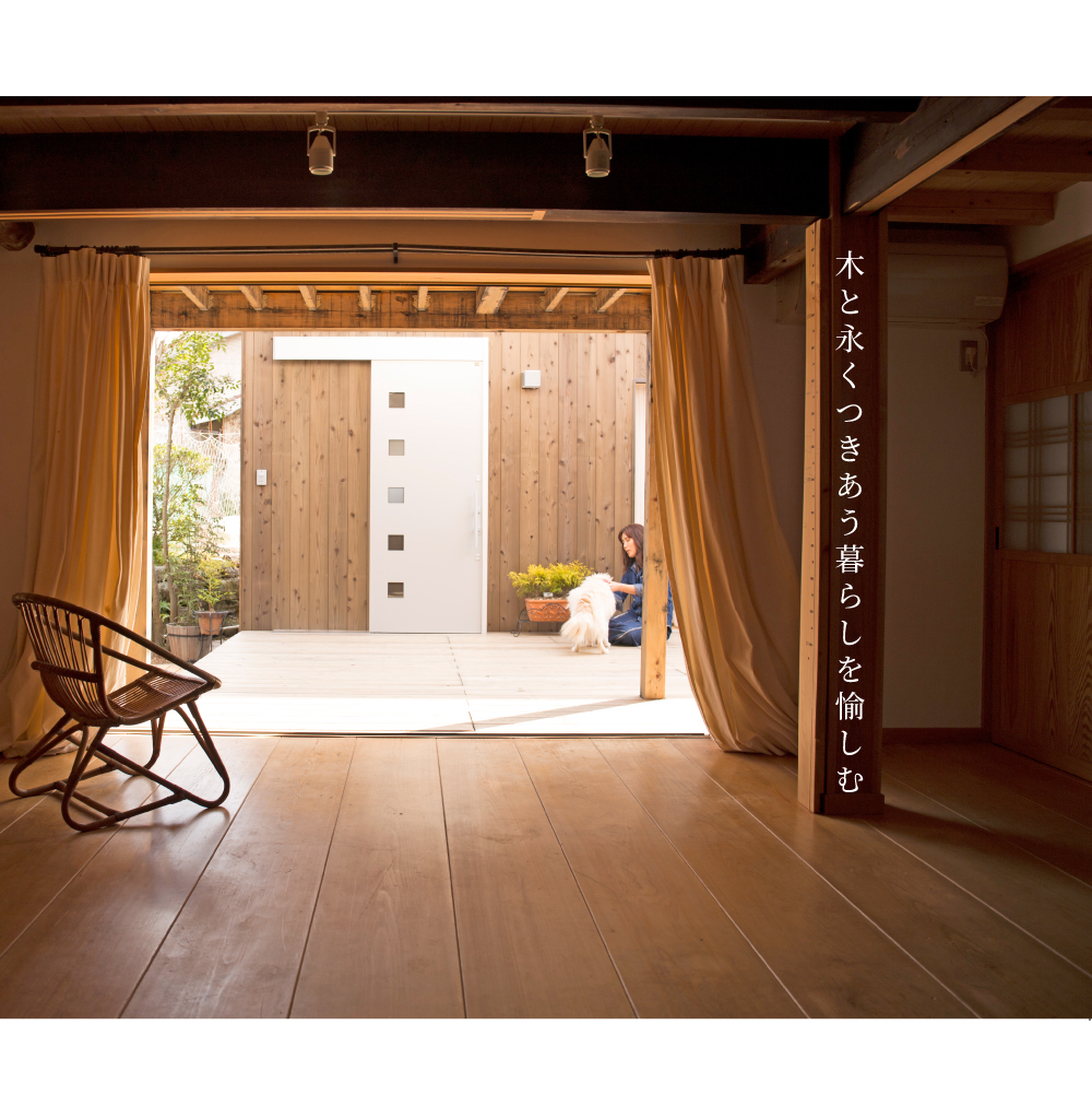 屋外につかう無垢材につかう塗りなおしメンテ不要の安全な木材防護保持剤です。(水質土壌汚染なし)