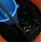 ▲藍に染めた和紙が届きます。染めた奉書を再度溶かします。
