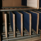 翌日は、朝から乾燥の工程に入ります。このようにイチョウの板に一枚ずつ貼り付けたものを、室に入れゆっくり乾燥させます。 良い紙になりますように。人間国宝の市兵衛さんでさえも「夜は緊張して眠れんかった。」と気を張った作業でした。 下の写真が完成した藍染和紙と越前奉書になります。