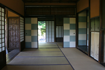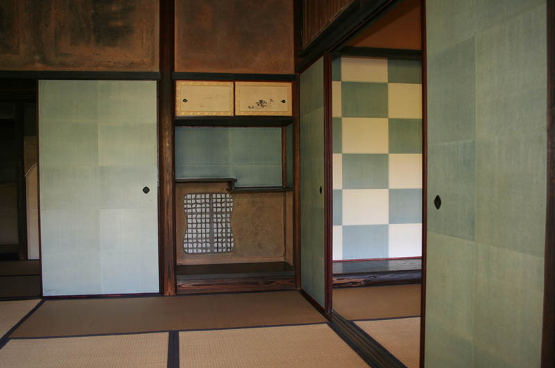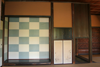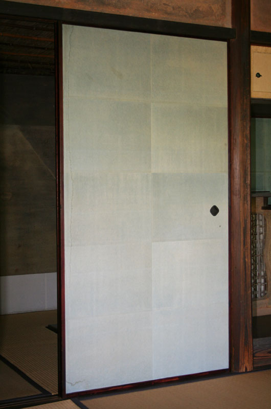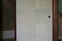 驚くほど強度をもつ和紙なので、ドアの明りとりとして採用しました。写真は、小杉放菴記念日光美術館にて個展を開催した時に写したものですので、 明り取りとしての効果がわかりづらいかと思います。