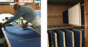 雌銀杏の板に貼り、室でゆっくり乾燥させます。越前では雌銀杏の板にのせると紙肌にきめ細かさがでると云われています。