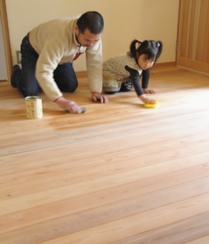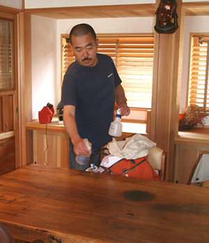 その後もあきらめきれない私は、会社の台所(私の研究室)にこもって、実験をする日々。カラーワックス(未晒し蜜ロウワックス+アルカリ水+ベンガラ)だとうまく混ざり合い、あまり分離しないことが分かった。ベンガラがバインダー(結合剤)になって分離しないのだろう。それならば、バインダーになり得る安全な自然素材がなにかないだろうか?と探し始めた。塩をはじめとして、これなら入れてもよいだろうというものを片っ端に実験したが、どうにも上手くできない。
