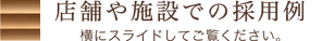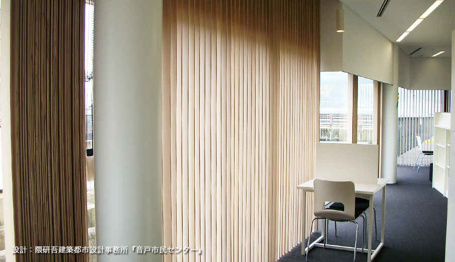 | 縦型 | 草津国際音楽ホール(吉村順三設計)・鳥取 智頭病院(横河設計)・青山オーヴ(セキデザインスタジオ設計)・榊原記念病院・アオーレ長岡(隈研吾建築都市設計事務所)・広島県 音戸市民センター(隈研吾建築都市設計事務所)・設計事務所兼自宅(N+Architectures) |
