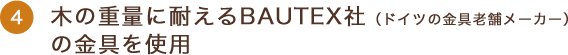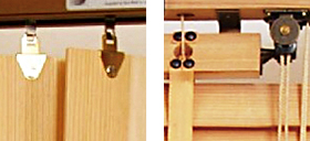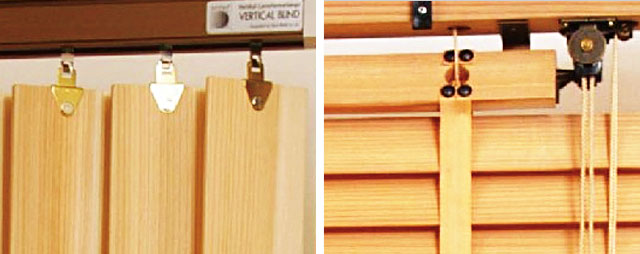無垢板で厚みのあるスラット(羽)はかなり重量があるため、厳選した金具を使用することで耐久面をUPさせています。