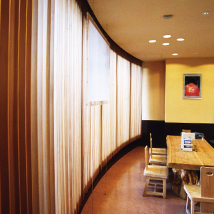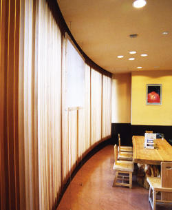 カーブ形状の窓や電動式ブラインド開閉にも対応できます。(ブラインドの高さは最大で3600mまで対応できます。それ以上の場合はご相談ください。)