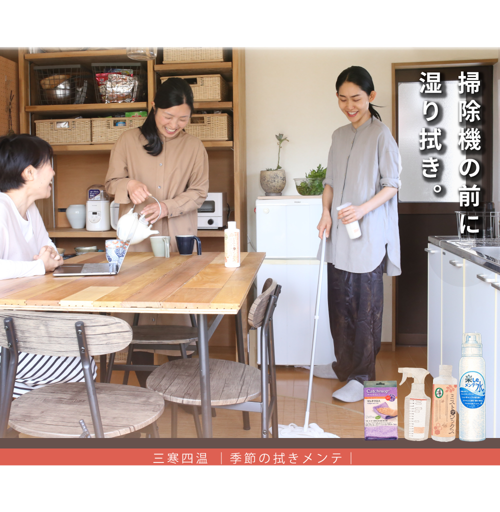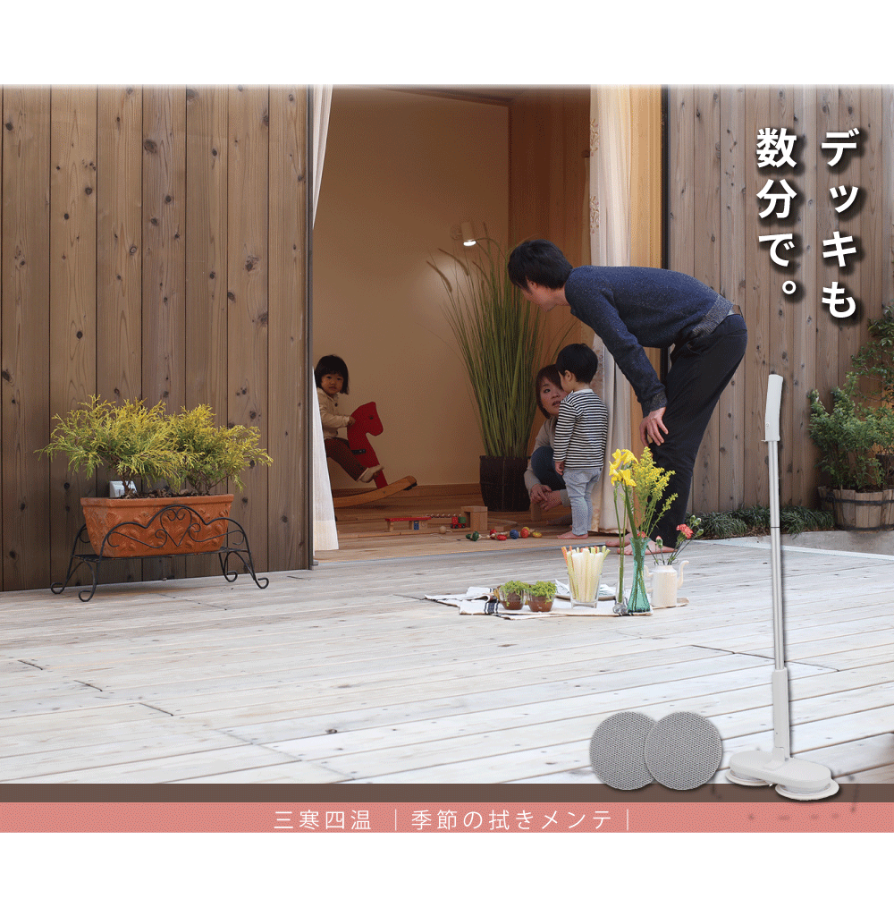 肘や腰に負荷をかけずに、掃除機感覚で「拭き掃除」ができるセット商品です。